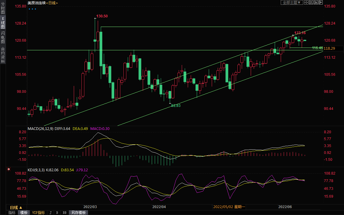 布伦特原油期货上涨0.26美元,报收每桶122.27美元。美国原油期货上涨0.26美元,报收每桶120.93美元。日内交易震荡,早些时候油价下跌约3美元。