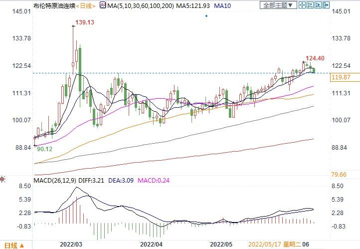 北京时间6月13日14:28 布伦特原油连续 报 119.87美元/桶