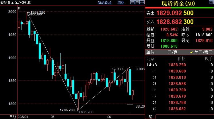 周二(6月14日),国际金价在刷新5月18日以来低位至1809.16美元/盎司后反弹转升,美元上行脚步暂停缓解了金市卖压。但由于市场对美联储积极收紧货币政策的押注不断增加,金价涨幅受到限制,后市料跌破1798美元。