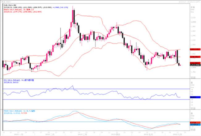 黄金空头趋势明显,持续大阴线下行,阴线实体也是击碎支撑位,连续破位,连续击穿一个个支撑位,黄金短期见顶隔夜黄金再次出现一泻千里的节奏,从1830附近继续下行到1804附近。四小时图基本上没有出现大阳线,全部收线上影线,然后大阴线实体全面覆盖上影线,这种是空头强势的体现,同时50均线丝毫没有犹豫,直接断崖式下行, k线直接跳水下沉。 小时级别,黄金的下跌回合缩小,说明多头还未完全放弃抵抗,近阶段要留意1800美元整数关口的支撑力度,若加息落地之前金价还是撑持在1800之上,须慎防靴子落地后的卖预期买实现现象的产生而导致黄金震荡反弹行情再现。短期日内短期压力:1815-1824-1830,下方支撑:1803-1800-1789.