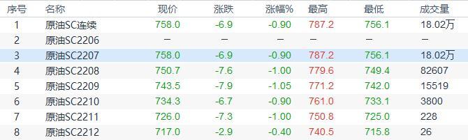 周三(6月15日)上海原油价格收盘下跌6.9元,跌幅0.90%。主力合约2207终盘收于758.0元/桶,跌6.9元/桶。油价收盘下跌,主要因美联储大幅度加息的预期升温,这也给油价带来压力。与此同时,美国再度释放原油储备,美国政府征税的消息也给油价带来压力。