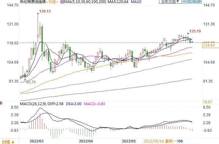 北京时间6月16日15:19 布伦特原油连续 报 118.83美元/桶