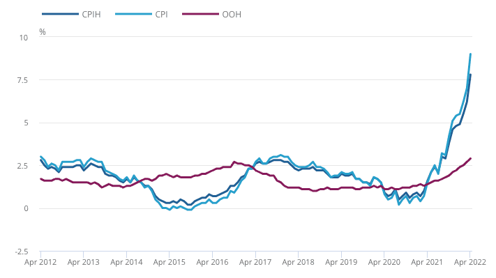 下图显示的是英国的通胀情况,可以看到从2021年4月开始明显上升