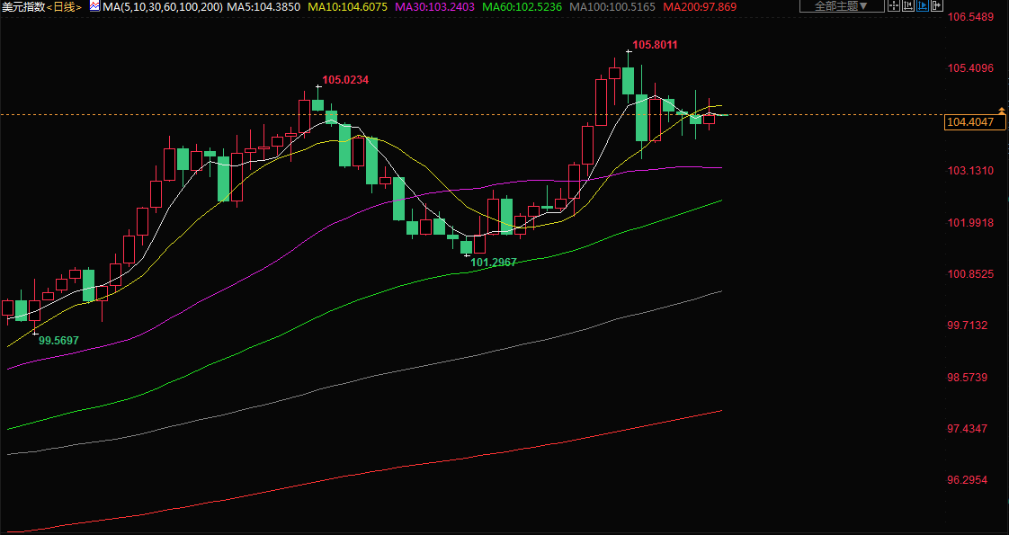 周五(6月24日)亚市盘初,美元指数交投于104.4附近,美联储主席周四重申其“无条件”致力于对抗通胀的承诺,加大对经济衰退担忧;欧元兑美元交投于1.05附近,PMI数据显示欧元区经济难以走上正轨,这促使交易员减少对欧洲央行大幅加息举措的押注。