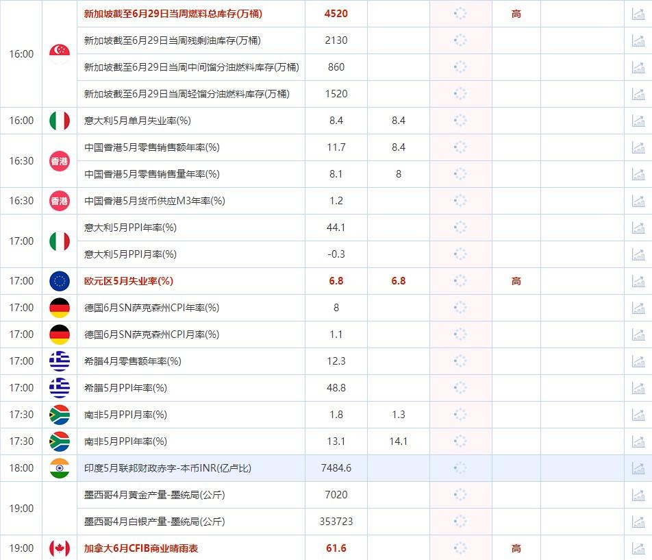 后续及时更新的财历数据请关注:【汇通网6月30日财经日历】