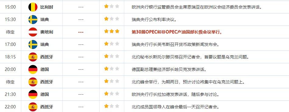 2022年6月30日,全球主要经济体将公布经济数据,需重点关注中国6月官方制造业PMI,英国第一季度生产法GDP年率终值,德国5月实际零售销售月率,美国截至6月25日当周初请失业金人数,美国5月PCE物价指数年率,美国6月芝加哥PMI。大事方面需关注: 第30届OPEC和非OPEC产油国部长级会议举行,北约峰会,以及欧洲央行行长拉加德的讲话。