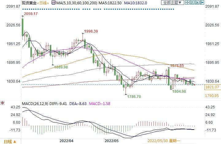 北京时间6月29日13:33 现货黄金 报 1821.07美元/盎司