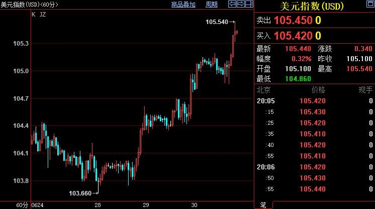 美元指数徘徊在最近二十年高点105.801下方附近,这使得以美元计价的黄金对海外买家来说更加昂贵。且投资者会担心,高利率提高了持有非孳息资产黄金的机会成本。
