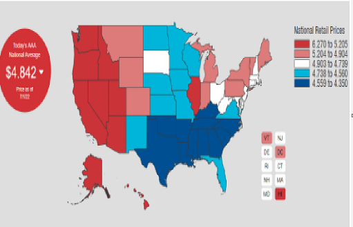 自今年年初以来,美国汽油价格狂飙,两周前突破每加仑5美元,创下历史记录。根据美国汽油网站AAA的数据,今日(7月1日)美国汽油平均价格为4.842美元,价格比之前两周出现小幅回落。