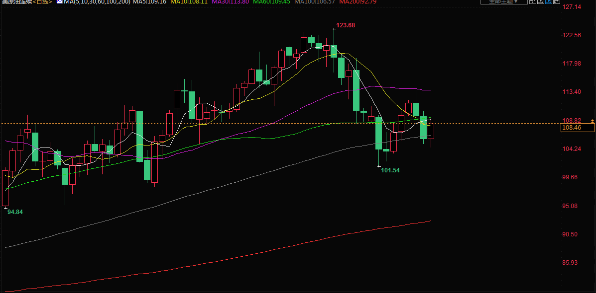 商品收盘方面,布伦特原油期货结算价上涨2.4%,报每桶111.63美元,。美国原油期货上涨2.5%,收报每桶108.43美元;美国期金结算价下跌0.3%,至1801.5美元。