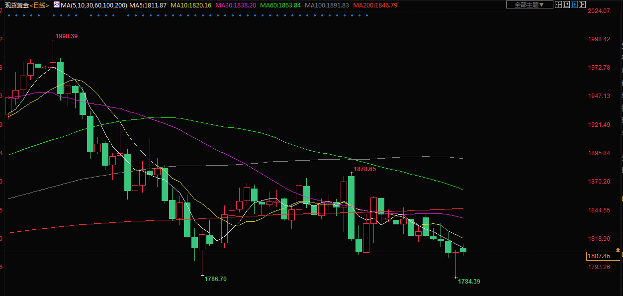 黄金周一下跌,因为利率上升的前景削弱了对这种非收益资产的吸引力,但美元走软帮助金价坚守在1800美元的支撑水平之上。Exinity的首席市场分析师Han Tan说,黄金多头陷入了美联储激进政策行动的泥潭,因为美国利率上升的前景侵蚀了对这种贵金属的吸引力,美联储预计将在本月再次提高利率75个基点。