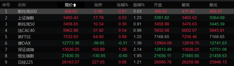 泛欧STOXX 600指数上涨0.5%。由于美国市场放假,交易量受限,上周该指数因担心全球经济可能放缓而下跌。