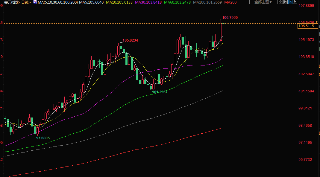 周二(7月6日)亚市盘初,受避险需求推动,美元指数交投于106.51附近,经济衰退担忧加剧,交易员等待美联储会议纪要和非农数据,以确定美联储更进一步的举措;目前,市场预计7月利率决议加息75个基点。
