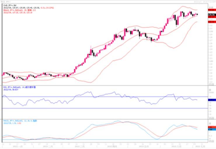 在周二(7月5日)外汇市场上,尽管美元指数涨势如潮,但日元似乎有点岿然不动的感觉。今年以来,做空日元一直是热门的宏观交易之一。不过花旗分析师认为,日元的苦日子可能即将过去。在美联储加大幅度加息以抑制通胀的同时,日本央行仍然坚持维持低利率不变以提振日本经济,与美国利差的扩大,使日元成为今年10国集团中表现最差的货币,日元兑美元今年迄今已经累计下跌了15%。然而,越来越多的证据表明,随着人们对全球经济衰退的担忧加剧,日元和美债等传统避险资产正在重获青睐。此外,市场对于日本央行将转向鹰派的猜测仍然没有消失,这可能会给与日元一定的支持。若是在随后7月份美联储的加息落地后,日元不会跌穿20年来的低位137,则要谨慎防范美元兑日元出现大幅度的反转风险。日线图上,有熊背离迹象,MACD开始形成死叉,显示冲高动能开始减弱。下方米切留意135.00的支撑,一旦跌破,美日回撤幅度将会加大。