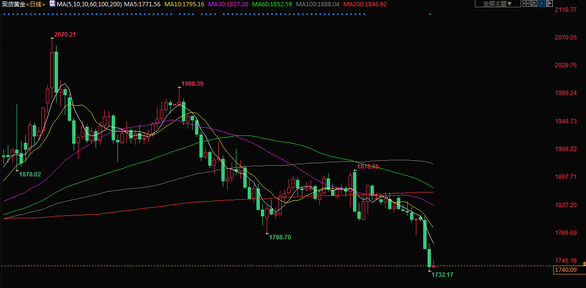金价周四波动不大,美元涨势暂停,鼓励一些投资者进场低吸买入。High Ridge Futures金属交易主管David Meger表示:“在黄金遭大规模抛售后,出现了一些常见的逢低买入。在昨天低见1700美元后,显然有一些人有兴趣低吸买入。美元今天没有进一步上涨,也让黄金得以反弹。“