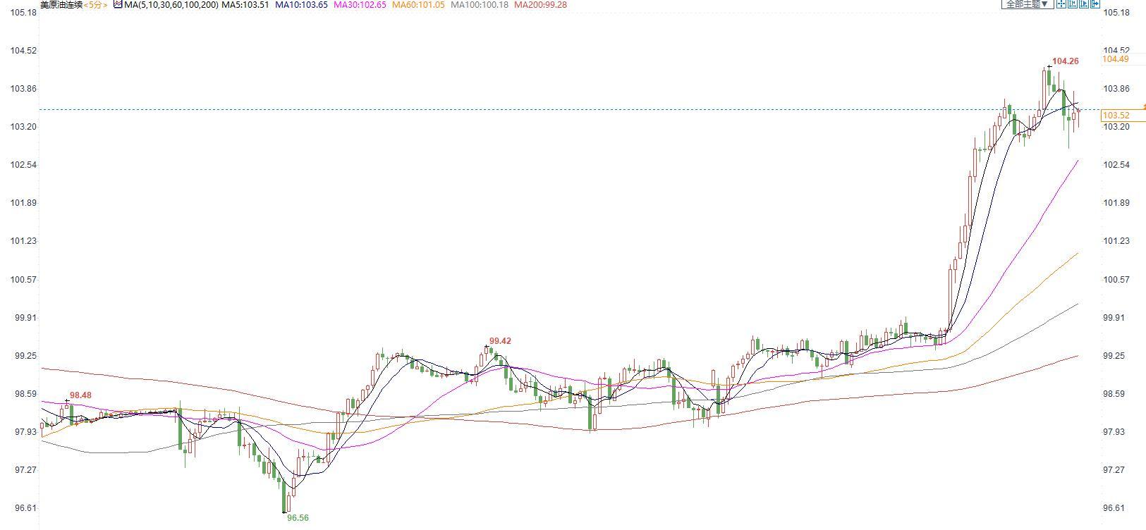 美国原油价格5分钟图显示