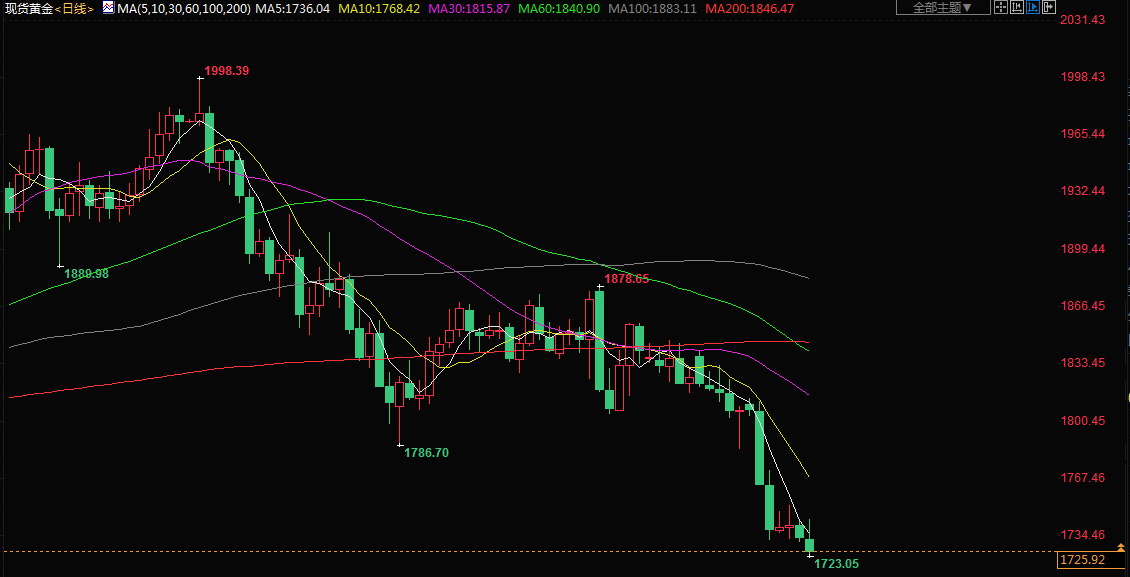 金价周二触及九个月最低,受累于强势美元和美联储加息押注,同时投资者为一系列可能决定货币政策收紧步伐的美国经济数据做准备。RJO Futures高级市场策略师Daniel Pavilonis表示:“(投资者)大量购买美元,以及在通胀更为持续之际,对利率走高的预期,对黄金构成压力。”