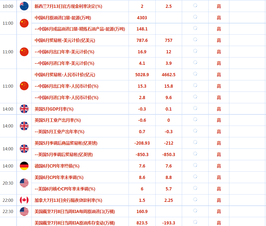 16:00 IEA公布月度原油市场报告、22:00加拿大央行公布利率决议、23:00加拿大央行行长麦克勒姆召开货币政策新闻发布会。
