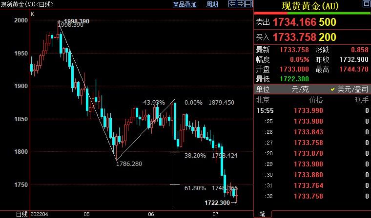 周二(7月12日),现货黄金在创下2021年9月30日以来新低1723.05美元/盎司后持稳,因美元指数回踩108关口。即将公布的美国6月通胀数据料巩固美联储激进的鹰派立场,继续利空金市场,但增长前景担忧减缓了金价下行步伐。