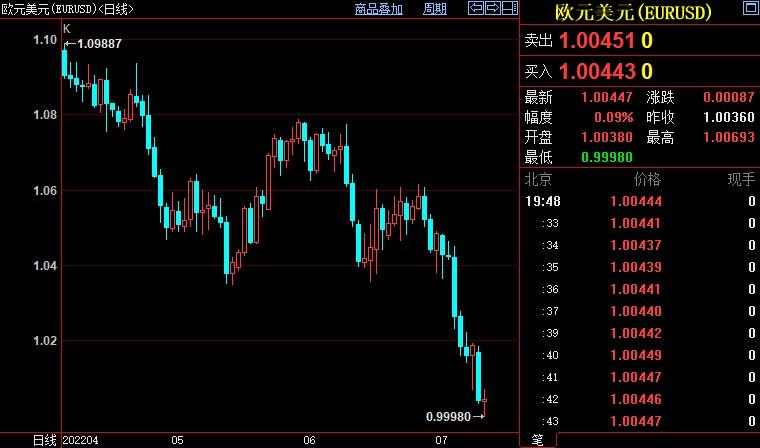欧元兑美元在周一跌破平价,创2002年12月初以来新低至0.9999。鉴于欧洲央行在提高利率方面落后于美联储,加上天然气价格持续飙升和乌克兰战争持续带来的影响,欧元尤其脆弱。欧元大跌也是支撑美元上涨的重要因素。