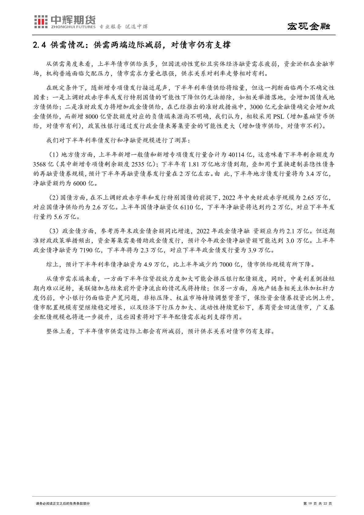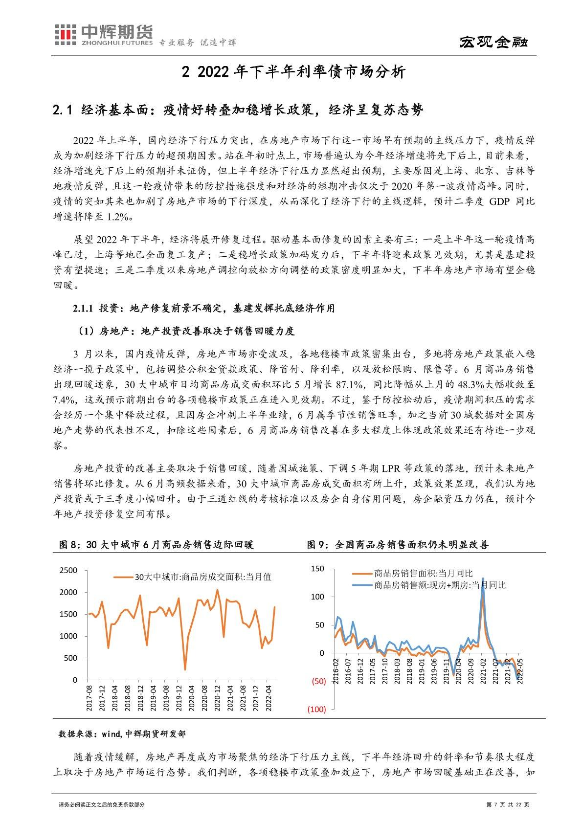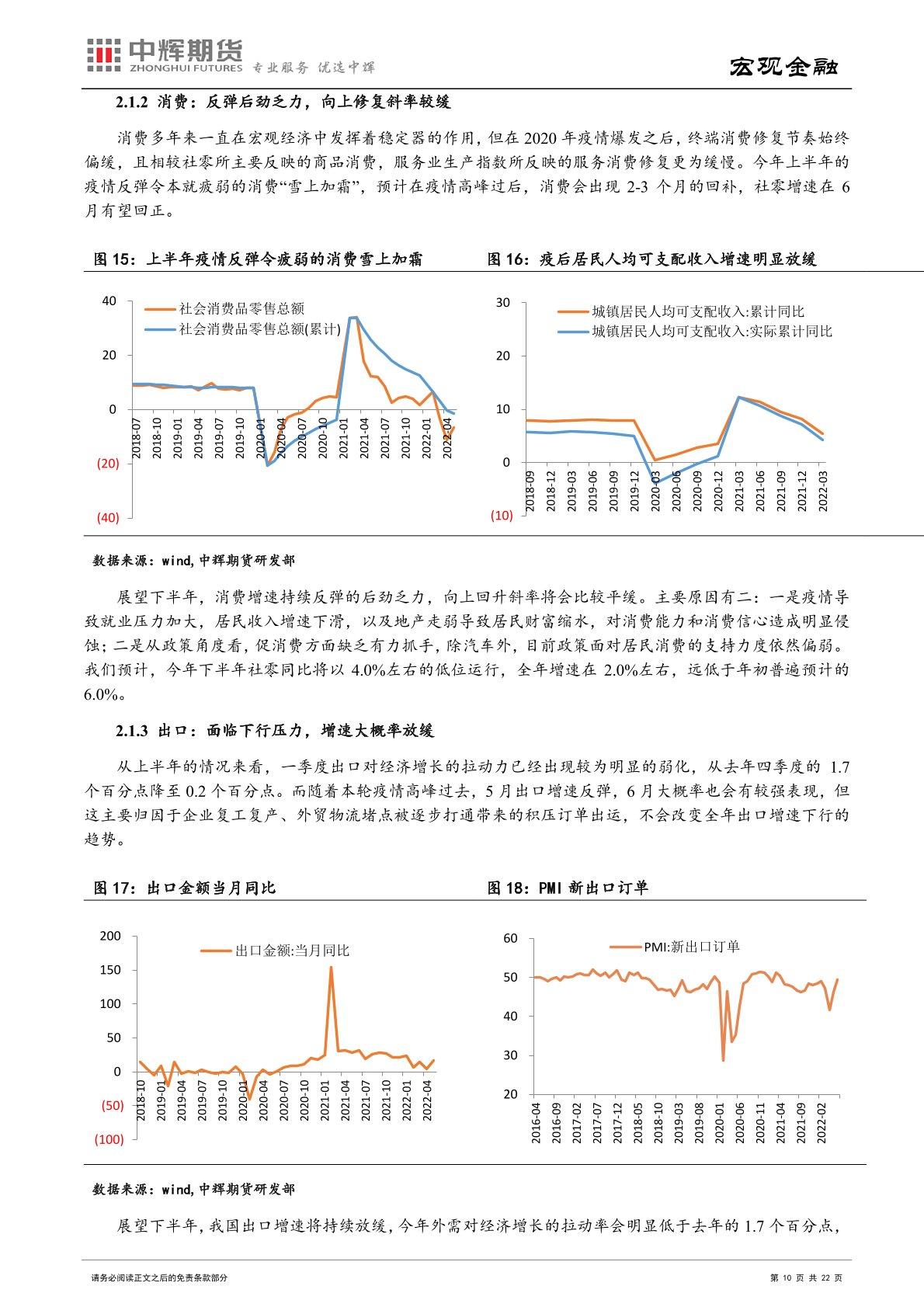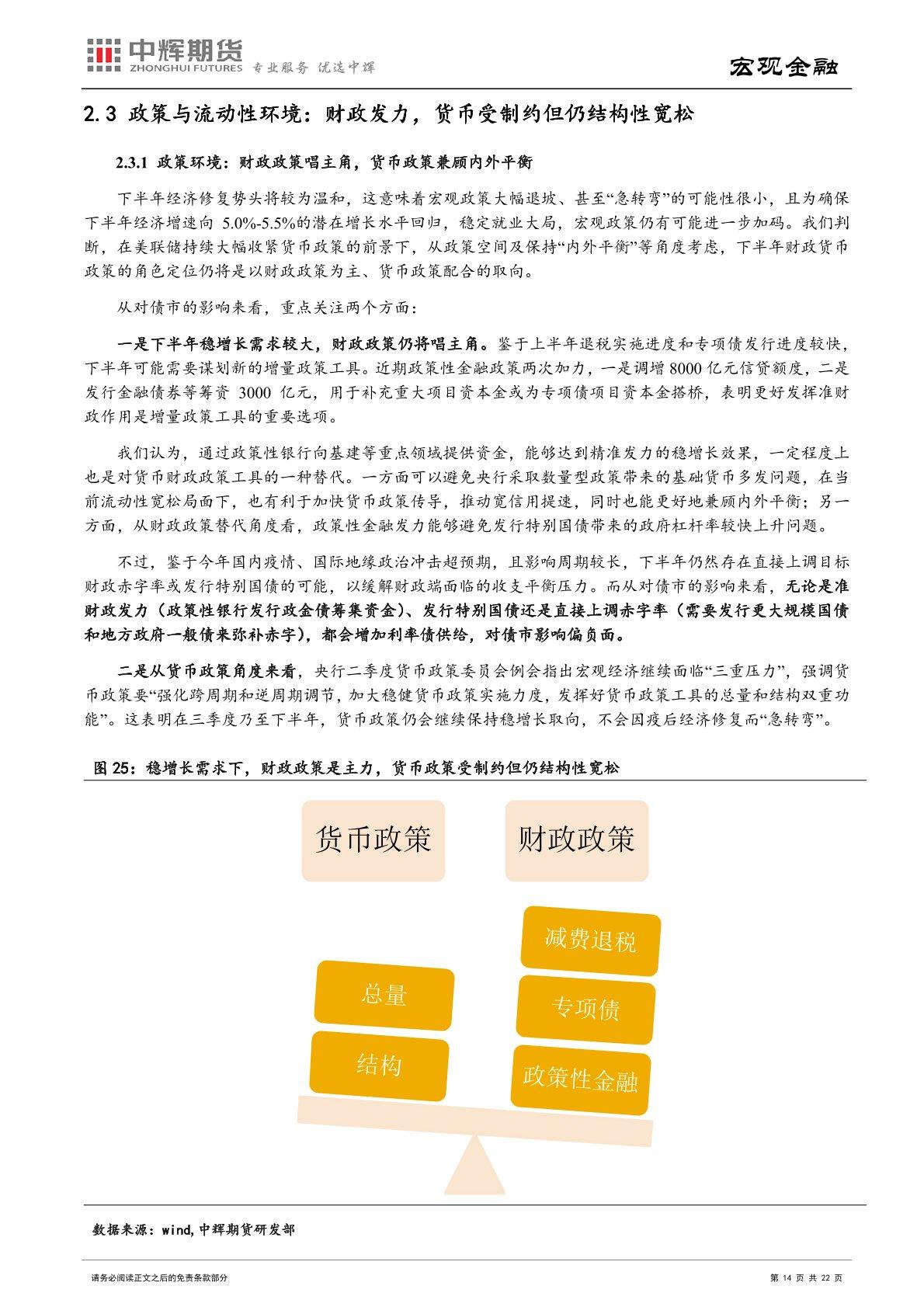 经济基本面:随着疫情防控态势逐渐向好,经济增长动能也将逐步恢复,中长端债市收益率有上行的压力。稳增长政策的发力下,投资将成为经济复苏的先行者,房地产投资同比增速将有所改善,基建投资或保持较高增速水平。消费的恢复或将呈现出滞后性和缓慢性。净出口同比增速或将逐渐下行,主因下半年或形成内需强而外需弱的格局,将带动进口增速提升而出口增速回落。需要注意的是,国内疫情不断反复以及带 来的衍生风险、房地产市场回暖前景、海外通胀与衰退共存局面等仍会对国内经济恢复进程带来不确定性。
