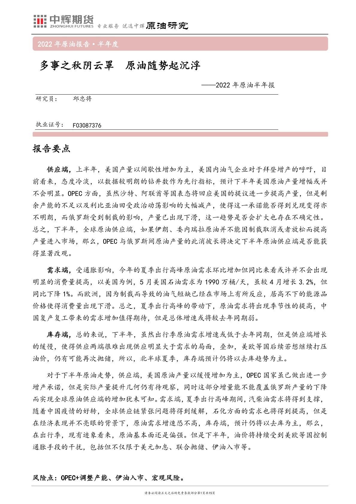 中辉期货原油半年报:多事之秋阴云罩,油价随势起沉浮