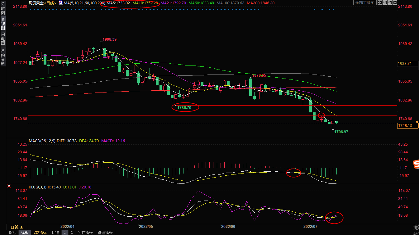 7月14日现货黄金交易策略:美联储7月加息100点预期笼罩市场,金价或再探千七关口