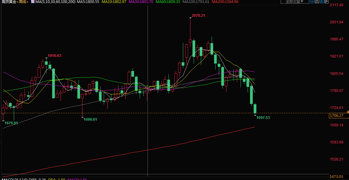 上周现货黄金下跌超2%,金价连续第五周下跌,盘中刷新2021年8月13日当周以来低点至1697.53美元。美国通胀同比增幅创逾40年新高至9.1%,对美联储加息提速的预期大幅提振了美元,打压了上周金价的整体走势。
