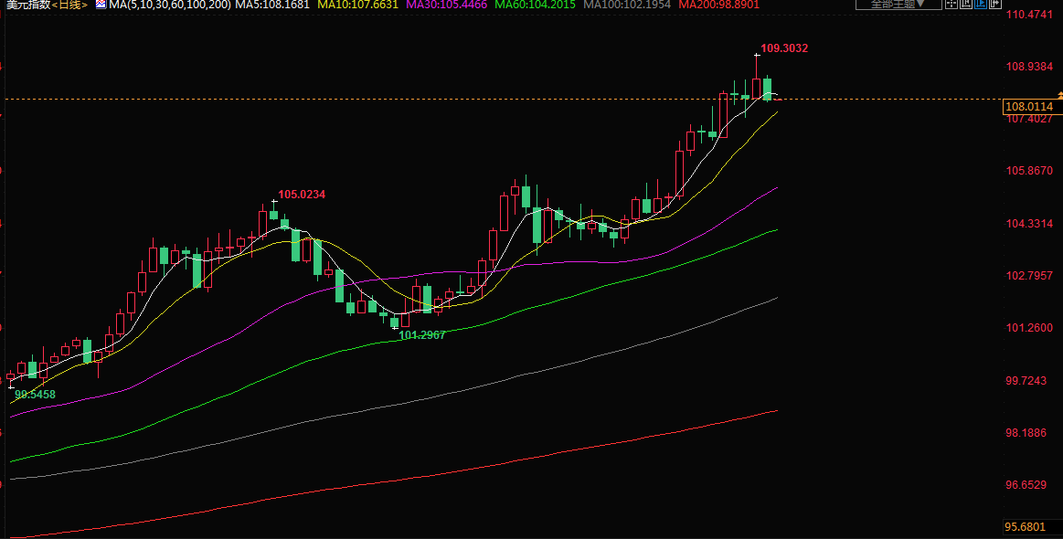 上周美元指数连续第三周上涨,先后上破108和109两大整数关口,刷新2002年9月中旬以来高点至109.303,因美国整体通胀破九,给美联储大幅加息提供了新的依据。而在全球经济衰退风险加剧之际,美元避险功能也得以彰显。ING分析师在一份报告中称:“美元有可能在当前水平附近企稳,但我们继续强调,美元下行修正空间有限,短期内风险平衡仍倾向于上行。”