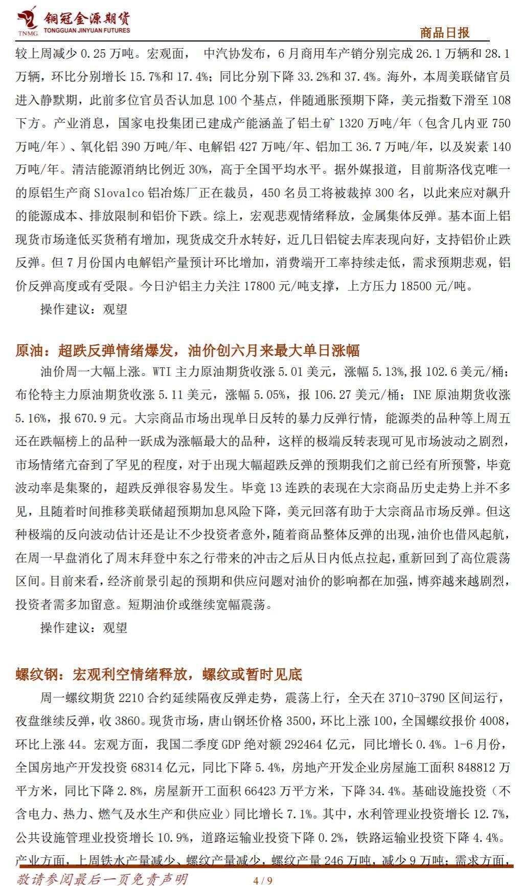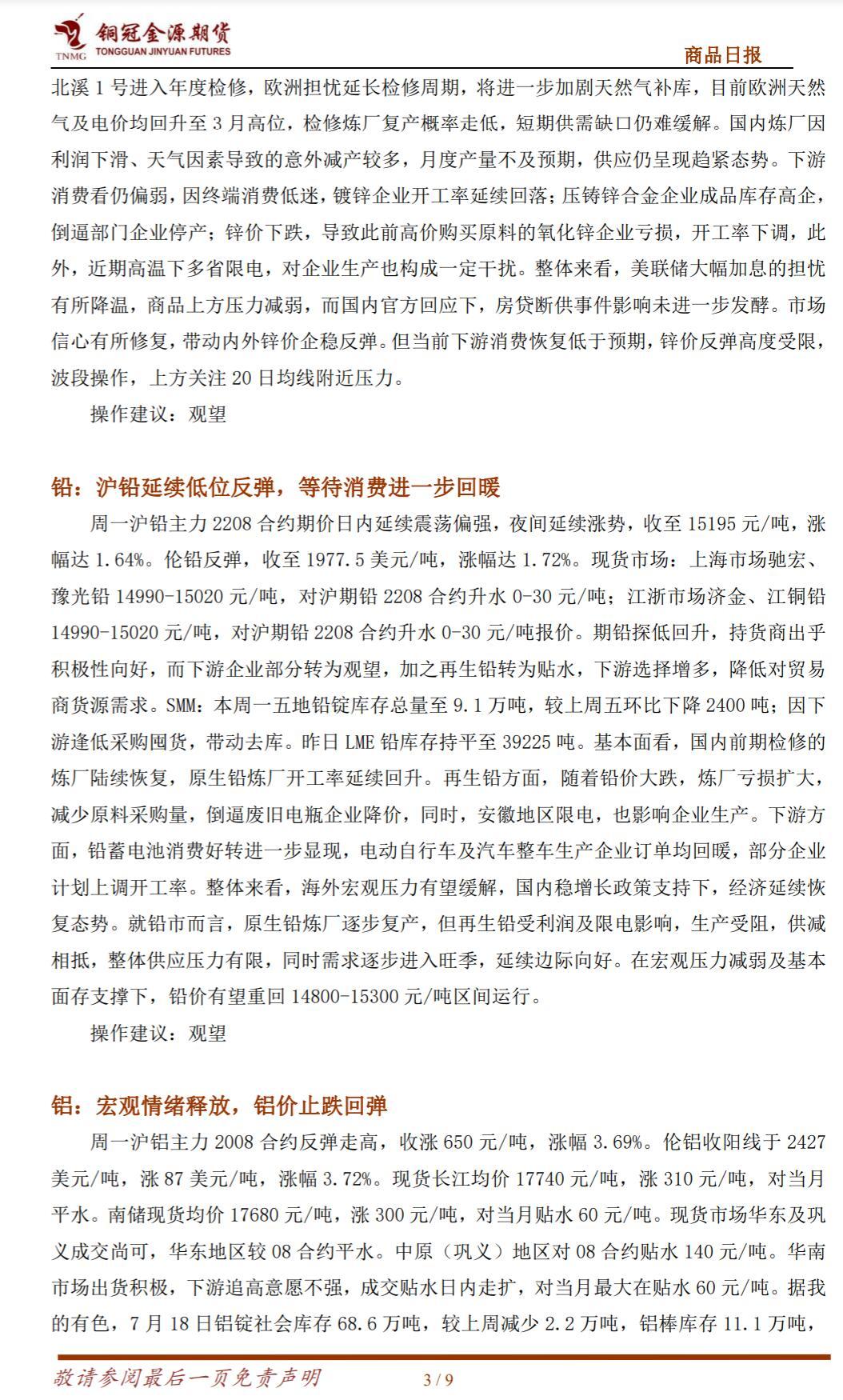 贵金属:金银近期仍将维持弱势运行。铜:市场情绪好转,铜价低位反弹