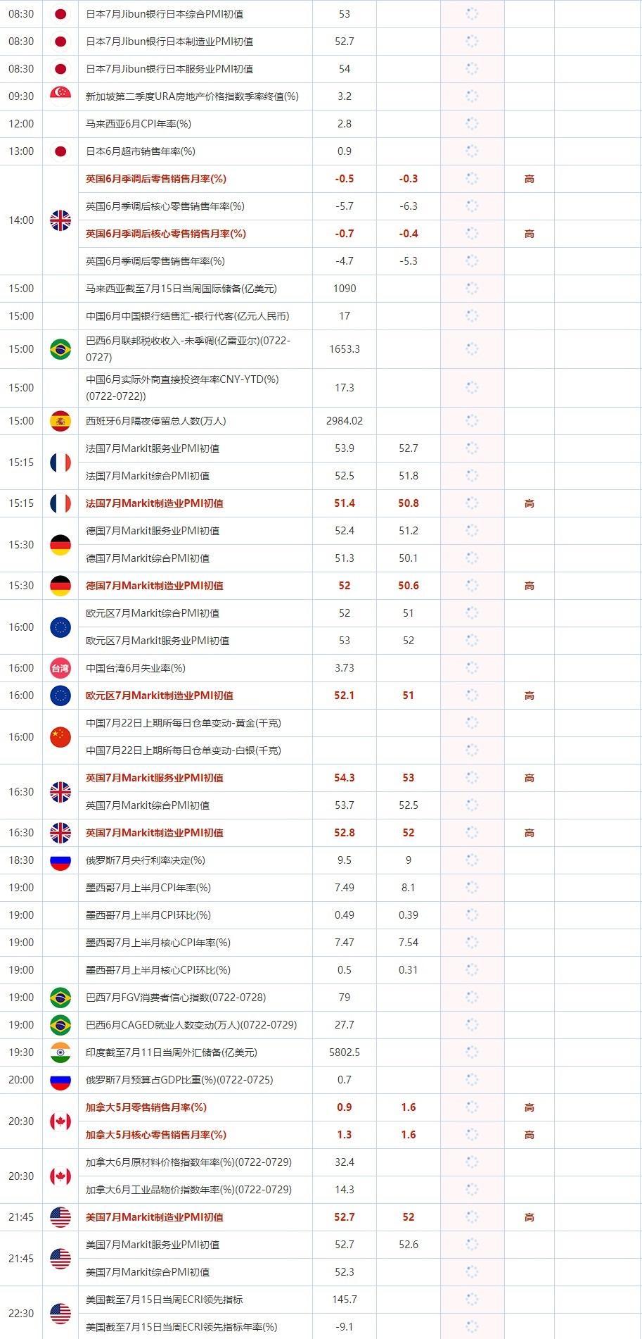 后续及时更新的财历数据请关注:【汇通网7月22日财经日历】