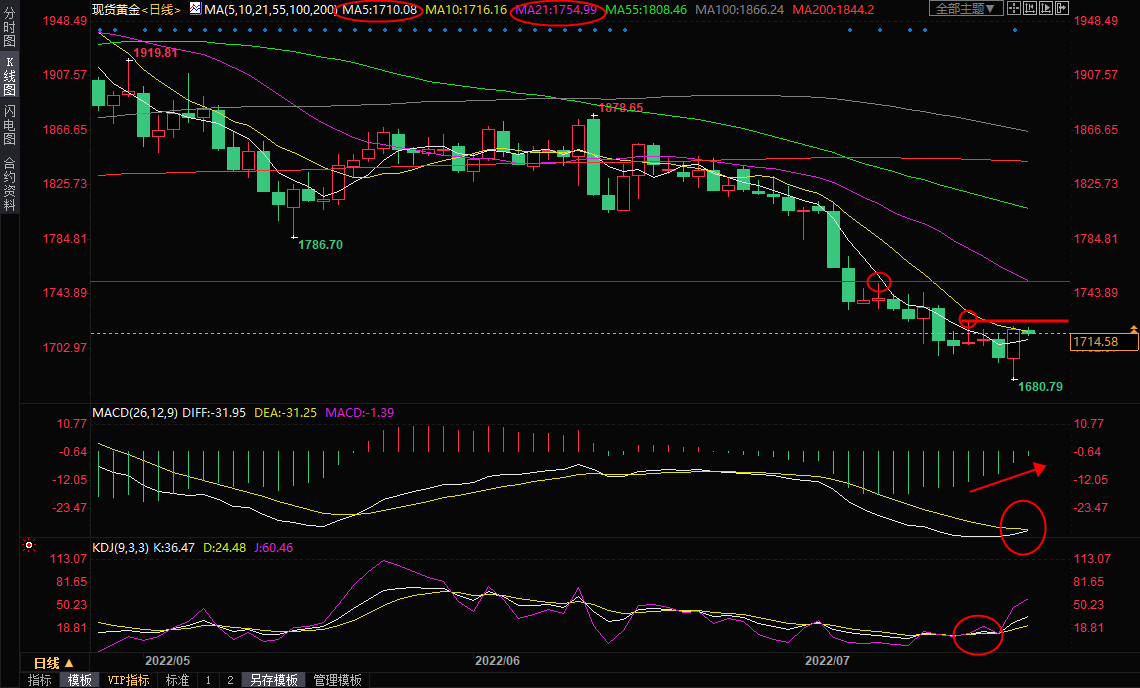 7月22日现货黄金交易策略:底部信号初步显现,后市转向多头了?