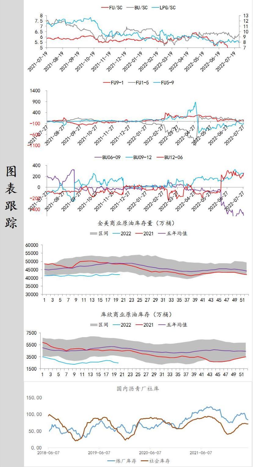 库存维持低位,需求暂未恢复,沥青现阶段基差较大,走势较原油强。