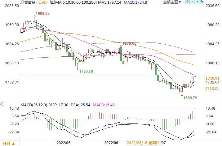 北京时间7月29日13:50 现货黄金 报 1759.91美元/盎司
