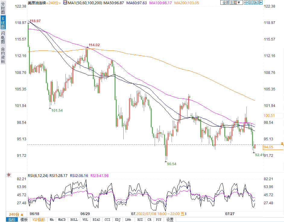 周一(8月1日)布油期货下跌3.8%,结算价报每桶100.03美元,盘中稍早一度低见99.09美元。调查显示,由于全球需求低迷和因疫情导致封控令生产放缓,美国、欧洲和亚洲各地的工厂在7月难以获得动能,这可能加剧了人们对经济滑向衰退的担忧。