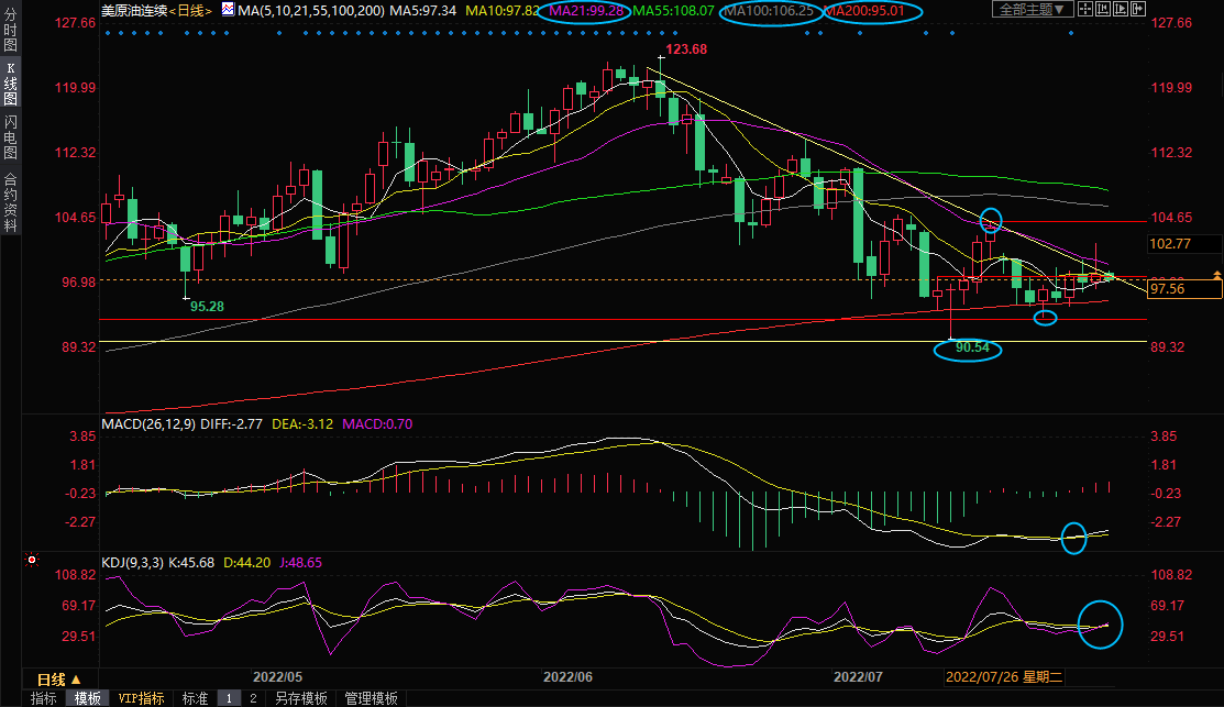 本交易日重点关注美国7月ISM制造业PMI数据的表现,目前市场预期不佳,可能会拖累油价;此外,还需留意欧美股市表现,近期欧美股市普遍大幅上涨,给油价也提供了一些支撑;当然,对于俄乌地缘局势和全球新冠疫情也需要予以留意。