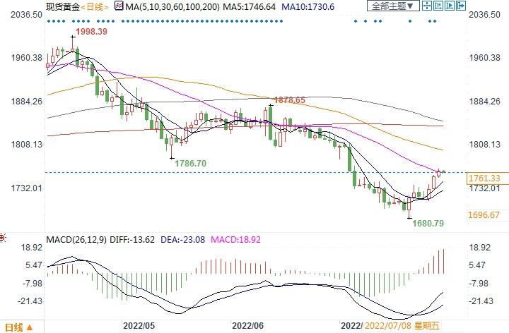 北京时间8月1日13:00 现货黄金 报 1761.33美元/盎司