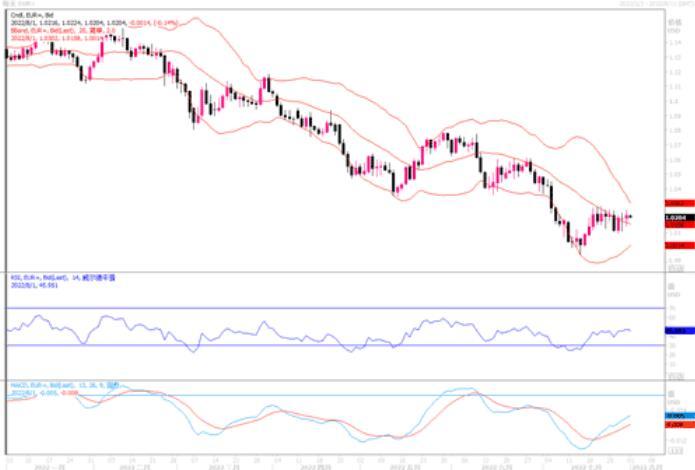美元周五在震荡交投中触及三周最低,在一批喜忧参半的经济数据公布后,投资者对经济衰退的担忧暂时超过了对通胀的担忧。其中,芝加哥制造业指数降至23个月新低52.1,刷新之前56.0 的最低纪录,这也给美元造成部分拖累,美元上周五触及三周以来低点105.57。周五数据公布后,利率期货市场预期美联储在9月政策会议上加息50个基点的可能性为7 2%,加息75个基点的可能性为28%。利率市场还预测,联邦基金利率将在2023年2月达到峰值。在美国数据公布前,市场还预计利率将在今年12月触顶。虽然欧元兑美元借助美元的回落略有上升,然却是非美货币中表现最为牵强的货币。随着俄罗斯暂停能源供应以来,欧元区陷入经济衰退以及政治局势风险都在压制着欧元的表现。庆幸的是,欧央行已开启了收紧货币政策大门,料这方面会给与欧元一定的巩固支持。目前4小时图上,欧元兑美元窄幅波动于1.01-1.0280区间内,技术指标处于中立水平,指向性不太明朗。在无重大消息刺激下,料仍是保持窄幅区间波动走势。但考虑欧元跌势已久,主要还是防其反弹走升风险。