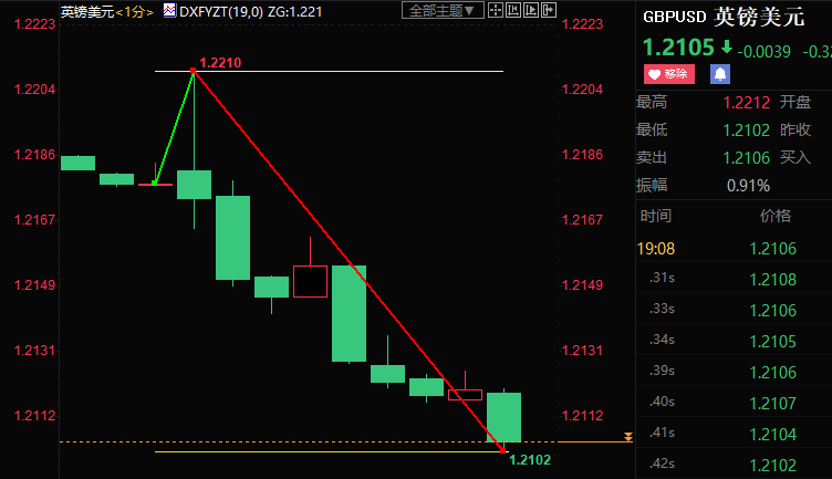 周四(8月4日)19:00,英国央行如期加息50个基点至1.75%,创1995年以来最大单次加息幅度,但预测通胀峰值更高,经济四季度衰退。截至发稿,英镑兑美元下跌87点至1.2091,累计波动近120点。