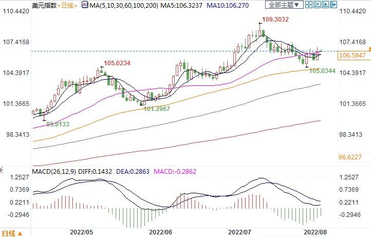 北京时间8月8日11:35,美元指数报106.5847