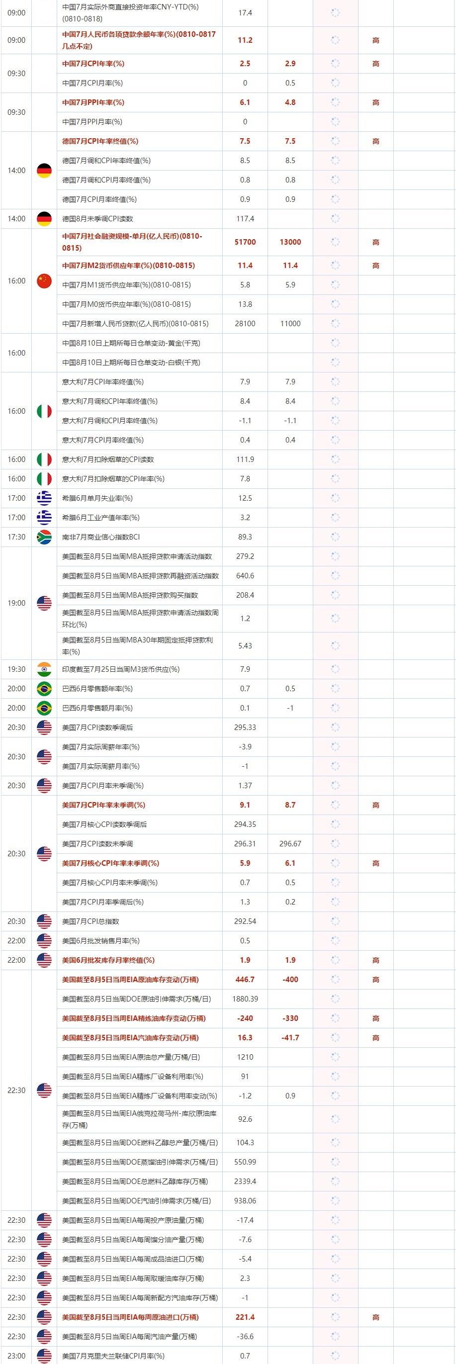 8月10日重点数据和大事件前瞻
