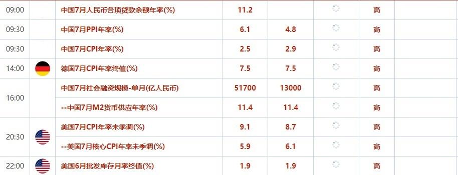 交易员的主要关注点是将于8月10日20:30公布的美国7月份CPI报告。报告预计将显示,在美联储于6月和7月连续加息75个基点之后,处于数十年高位的通胀在7月有所缓解。