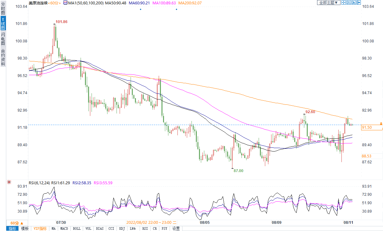 周三(8月10日)布油期货上涨1.1%,结算价报97.4美元/桶。美国能源信息署(EIA)表示,截至8月5日当周,原油库存猛增550万桶至4.32亿桶。不过,汽油库存大幅下降,隐含需求有所增加,此前在本应是夏季驾驶高峰期的几周内需求一直不佳。上周汽油出口量升至113万桶/日,创2018年12月以来最大增幅。