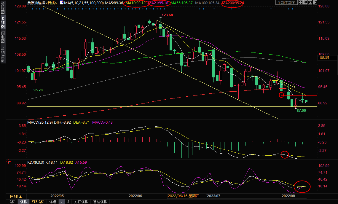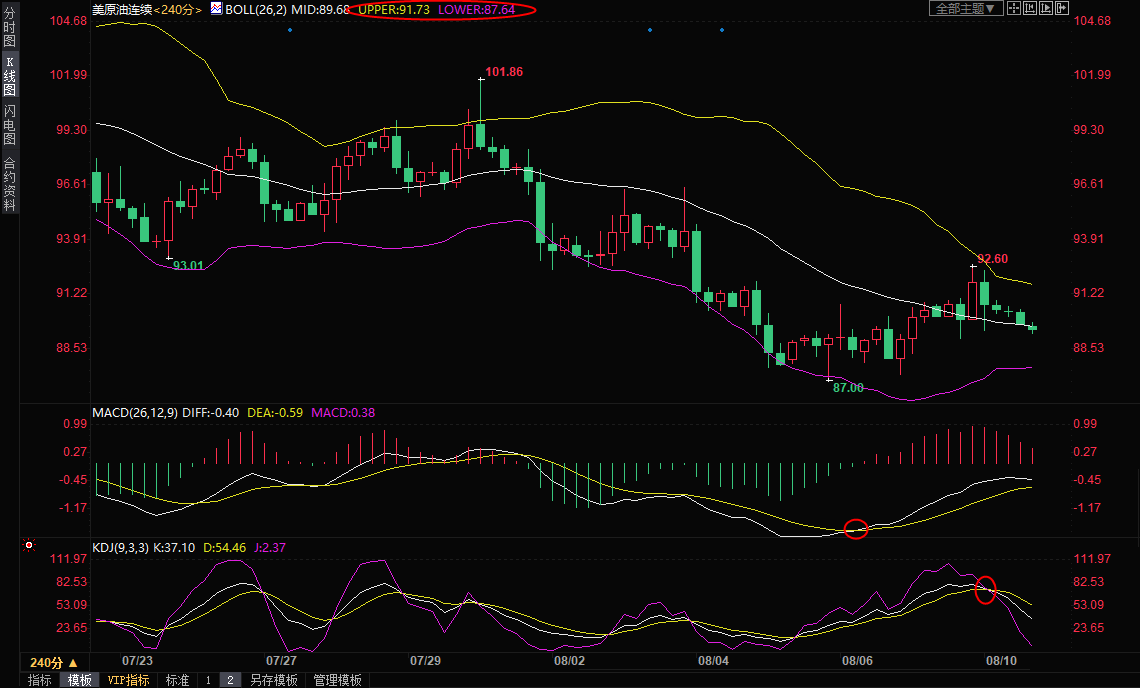 上方继续关注8月1日低点92.40附近支撑,如果油价能够给受阻87.46附近支撑并顶破该阻力,则油价仍有震荡筑底的可能性并增加短线看涨信号;进一步阻力参考200日均线95.23,21日均线阻力也在该位置附近,若能进一步上破,则增加中线看涨信号。