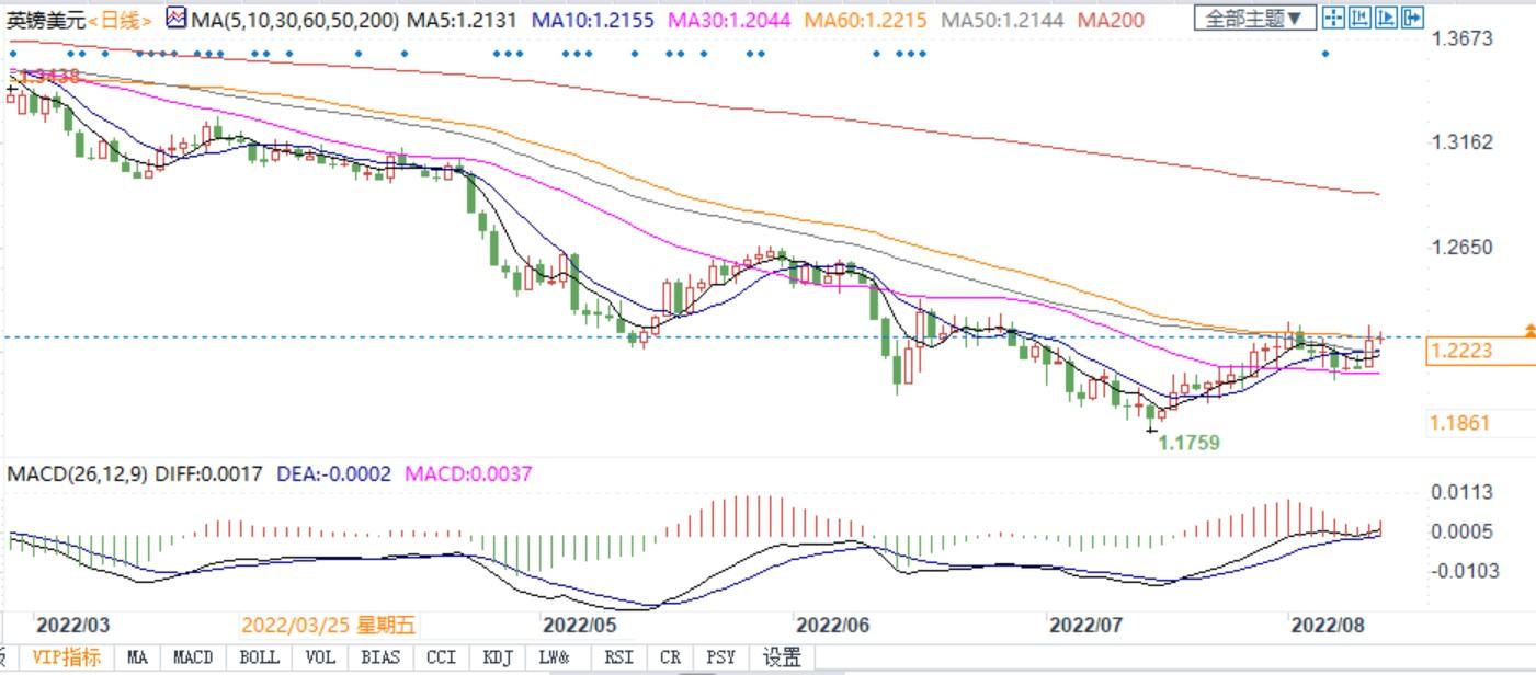 北京时间8月11日17:14,英镑兑美元报1.2220/23。