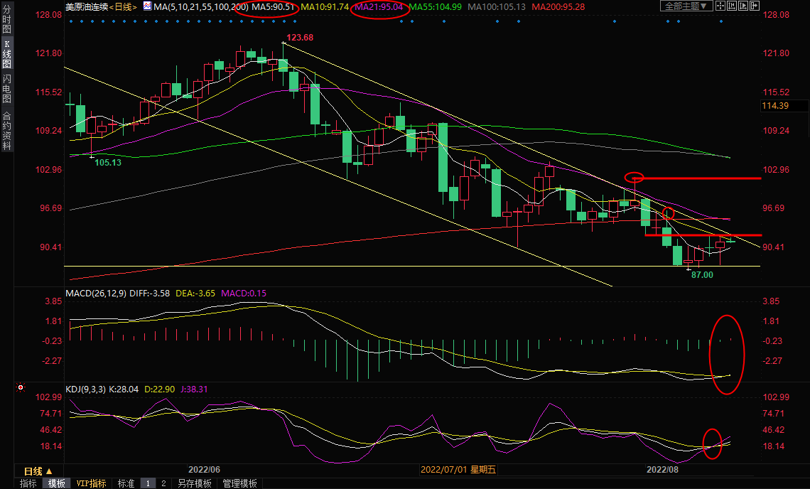 但是,油价目前仍处于下跌通道,短线看涨信号还不是很强,仍需提防进一步下探风险,初步支撑在5日均线90.50附近,继续关注87.46附近支撑,若油价下破该支撑,则增加油价跌向80关口的可能性。