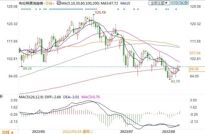 北京时间8月12日11:33 布伦特原油连续 报 99.09美元/桶