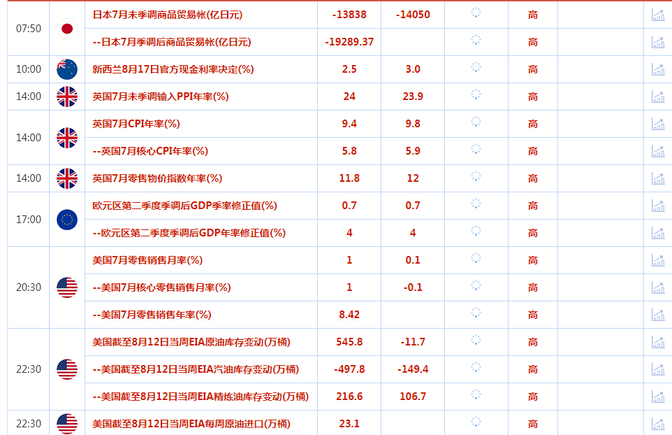 10:00 新西兰联储公布利率决议和货币政策声明、11:00 新西兰联储主席奥尔召开货币政策新闻发布会;周四2:00美联储FOMC公布7月货币政策会议纪要。