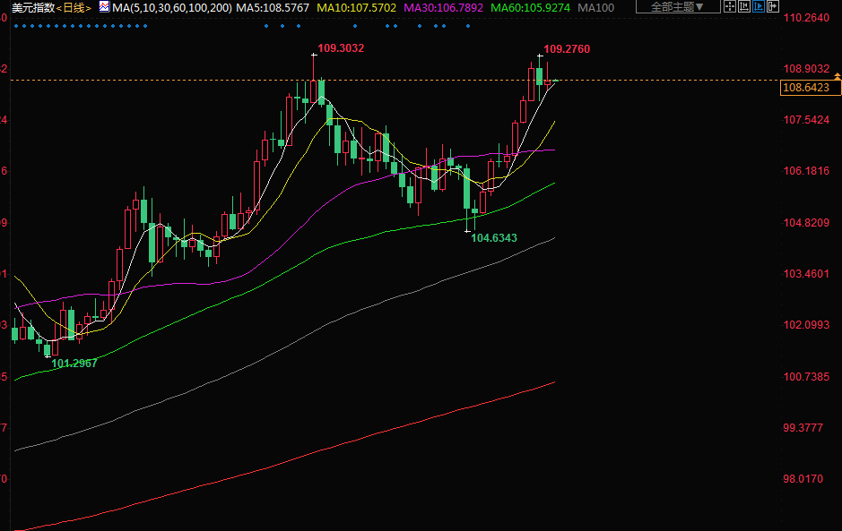 北京时间周四(8月25日)亚市早盘,美元指数交投于108.63附近,美元周三上涨,接近20年高位,投资者等待美联储主席鲍威尔周五的讲话,以寻找美联储在抗通胀斗争中将采取多激进立场的新线索。同时,投资者已经降低了美联储可能倾向于放慢加息步伐的预期,金价在1750关口持稳;油价上涨近2%,受到人们担心美国在对恢复伊朗核协议草案的回应中不会考虑对伊朗作出额外的让步提振。
