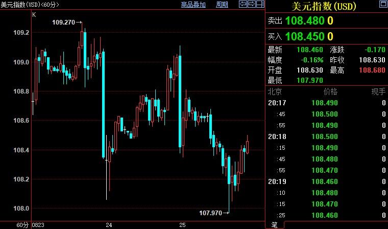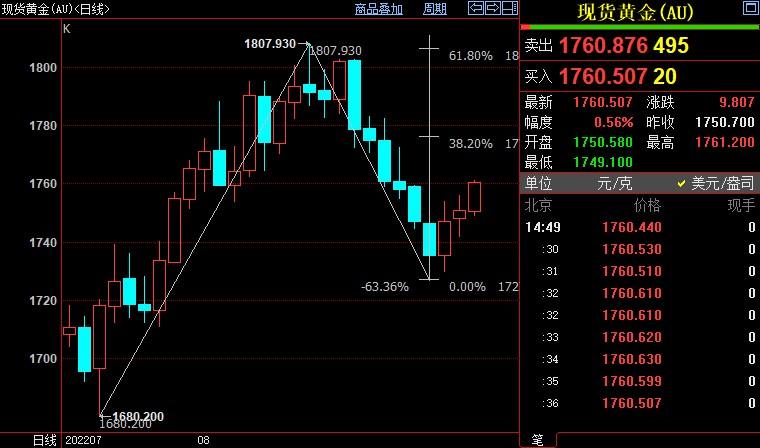 北京时间20:19,现货黄金上涨0.50%至1759.60美元/盎司;COMEX期金主力合约上涨0.65%至1773.0美元/盎司;美元指数下跌0.16%至108.467。